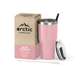 Whether it’s hot latte, cold matcha, or anything in between, your vacuum-insulated Arctic Tumbler keeps your drink at the perfect temperature. Each tumbler includes a splash-resistant, straw-compatible lid, a sturdy reusable straw, and a convenient straw cleaner.