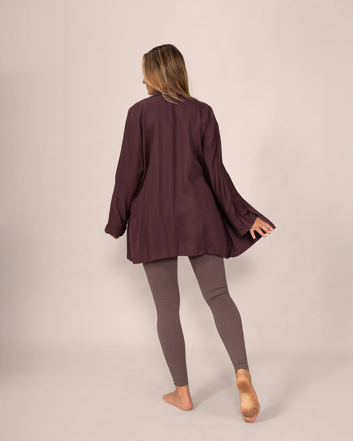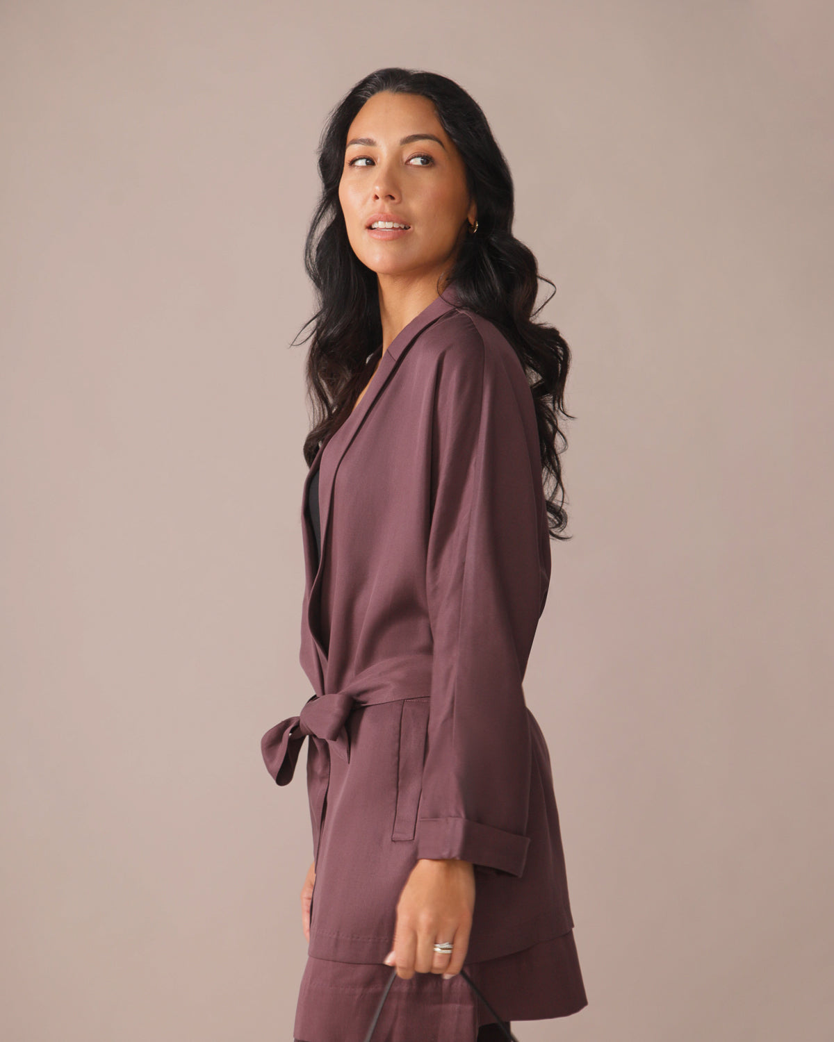 With its relaxed fit and self-tie belt, it’s the perfect layering piece—whether you’re heading to Pilates, transitioning in and out of the cold, or simply wrapping yourself in comfort at home. Crafted from our Eco Twill fabric, Its natural creases, just like linen, are part of the charm—an easy, lived-in look we love for its modern and relaxed vibe.