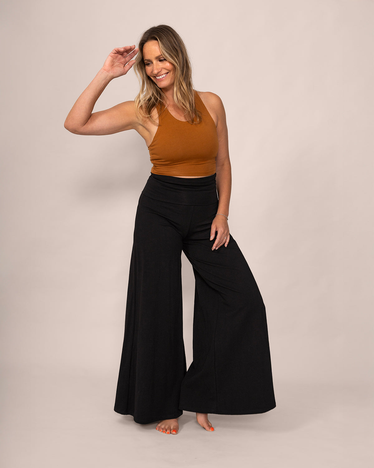 Me Time Pants. Designed for mindful movement and everyday ease. With their wide-leg silhouette and fold-over waistband, these light pants flow with you from morning meditation to evening unwinding. Made from a naturally breathable blend of 94% cotton and 6% elastane, they’re soft on the skin and gentle on the planet. Free from synthetics or microplastics, and certified Oeko-Tex for your peace of mind.
