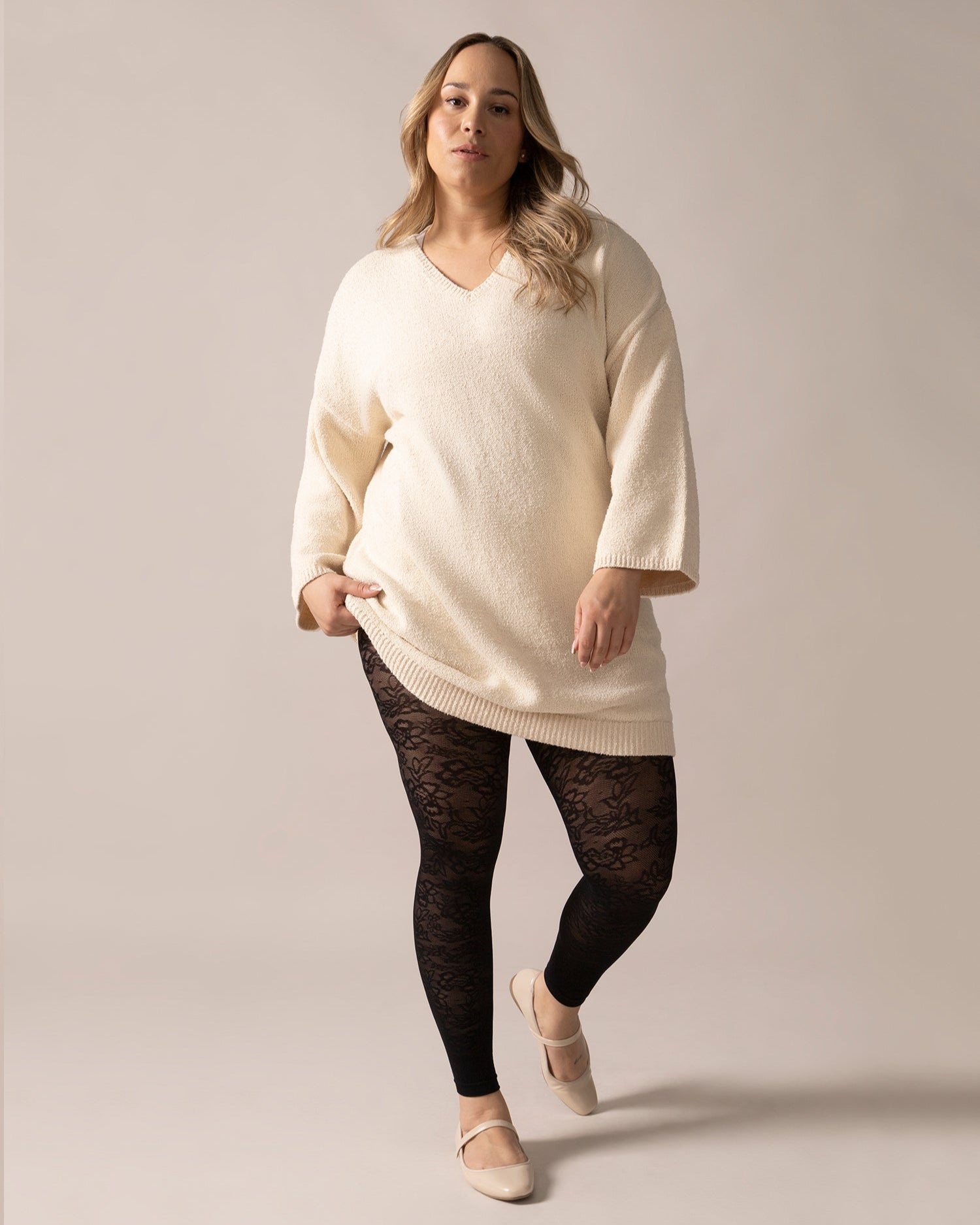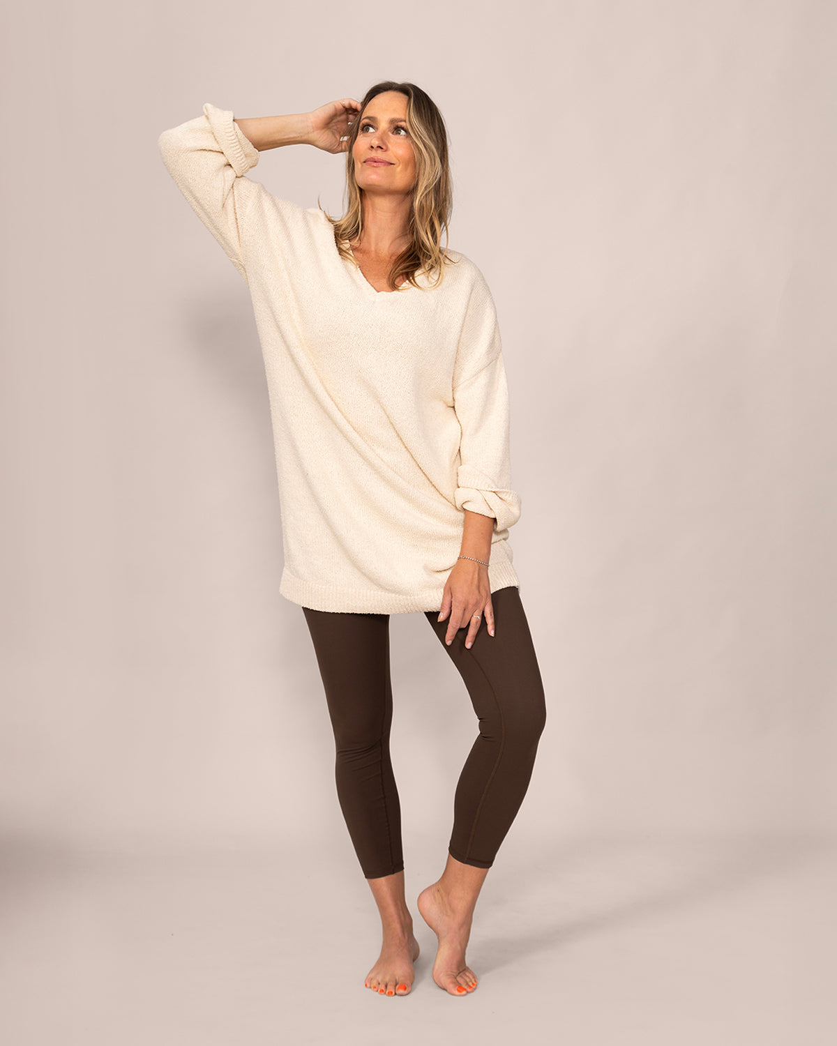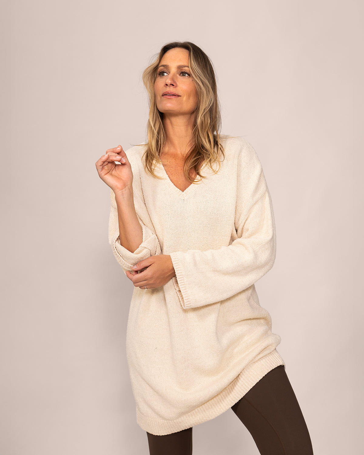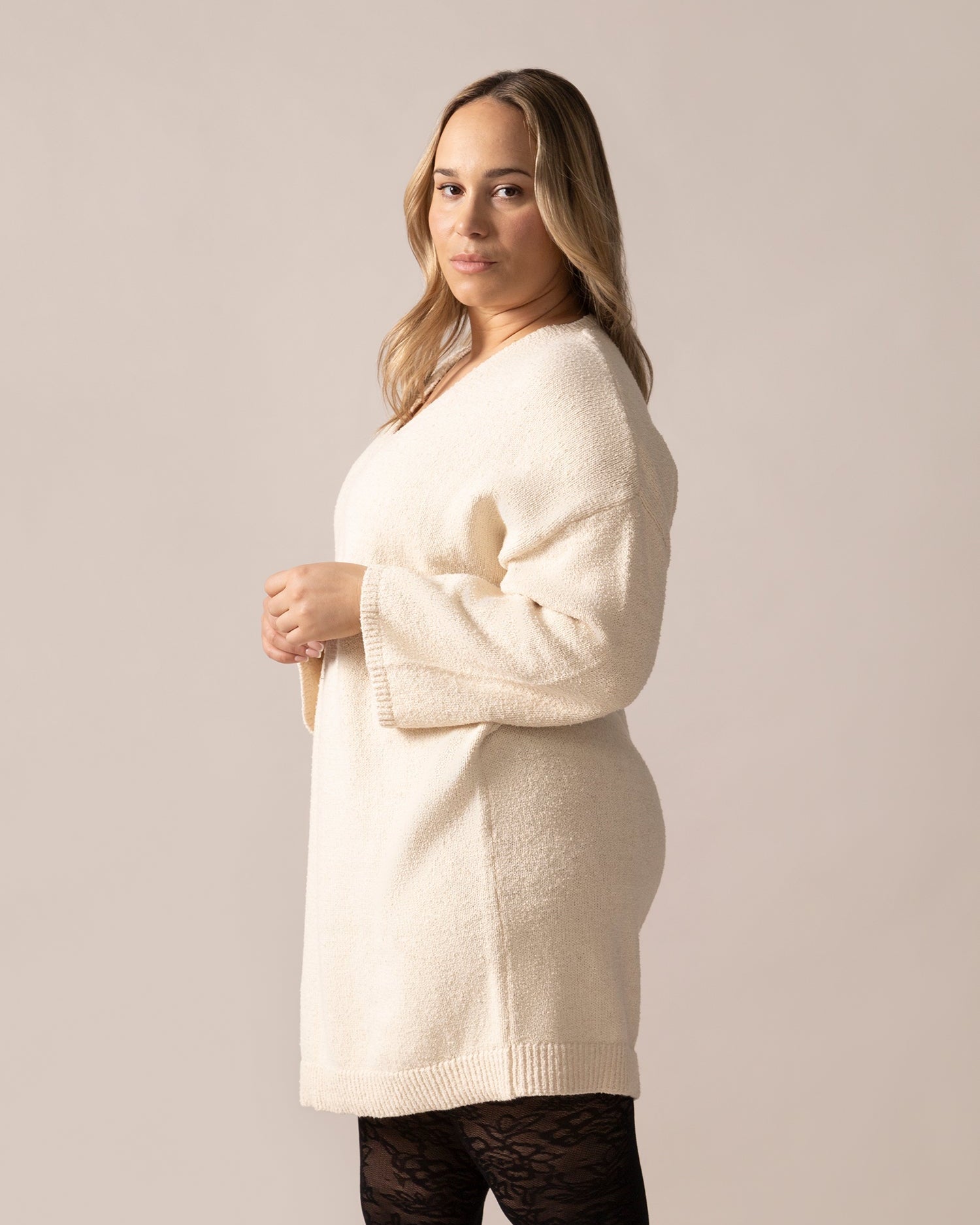 Think of it as your favourite sweater—made chic. With the perfect length to pair with tights or leggings, this long knit pullover gives you the cozy ease you love while elevating your everyday style. Ideal for working from home or stepping out with confidence.