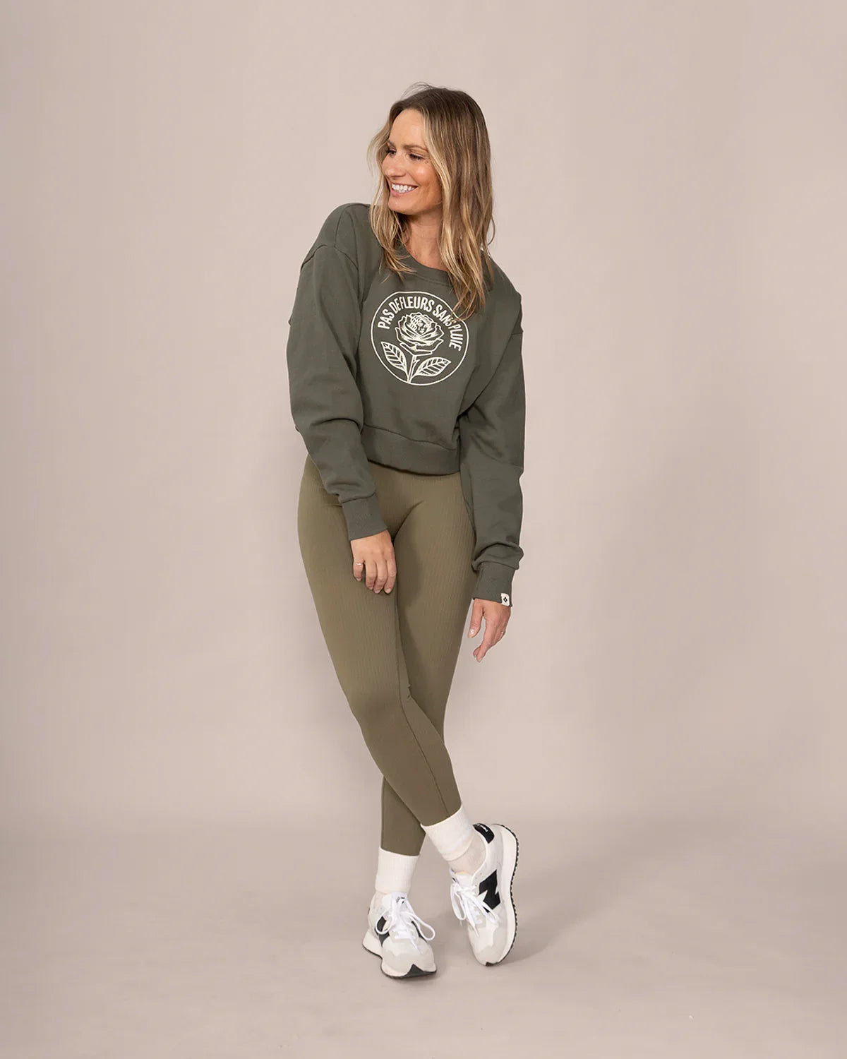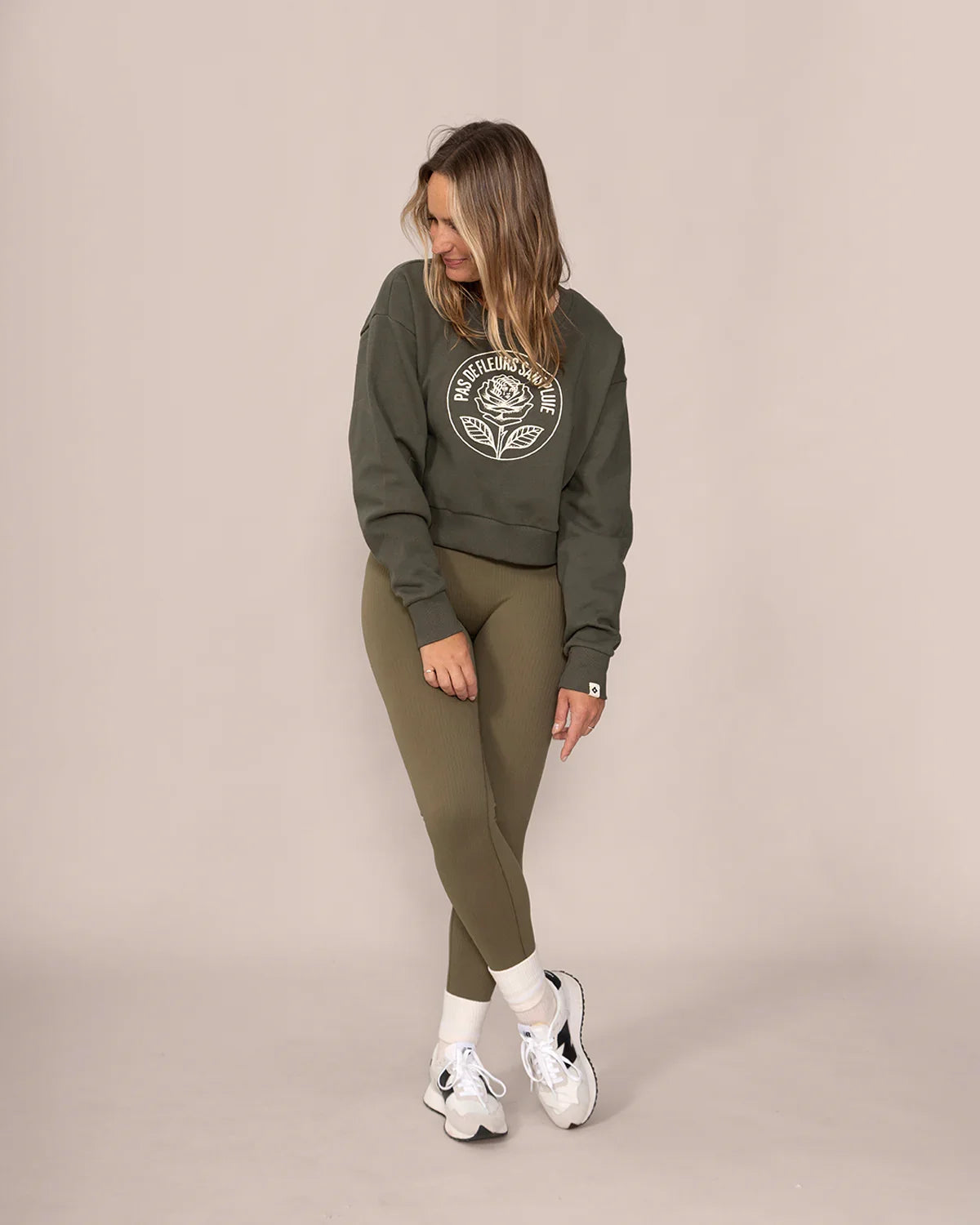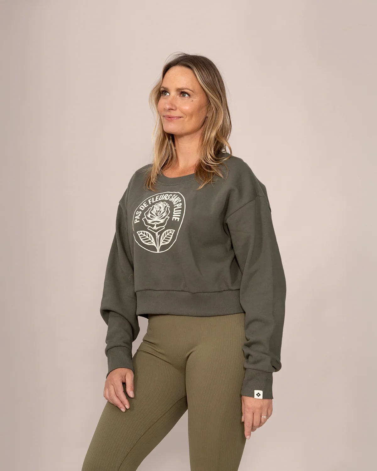 Wrap yourself in warmth and purpose with the Cropped Roses Sweatshirt, crafted from responsible cotton to embrace you in sustainable softness. This relaxed, mid-length layer invites you to honor each step of your journey, from active days to peaceful moments of reflection. With practical thumbholes and effortless style, it's more than just a sweatshirt—it’s a gentle reminder to love yourself and live mindfully. Let this piece be your companion in comfort, wherever your heart leads.