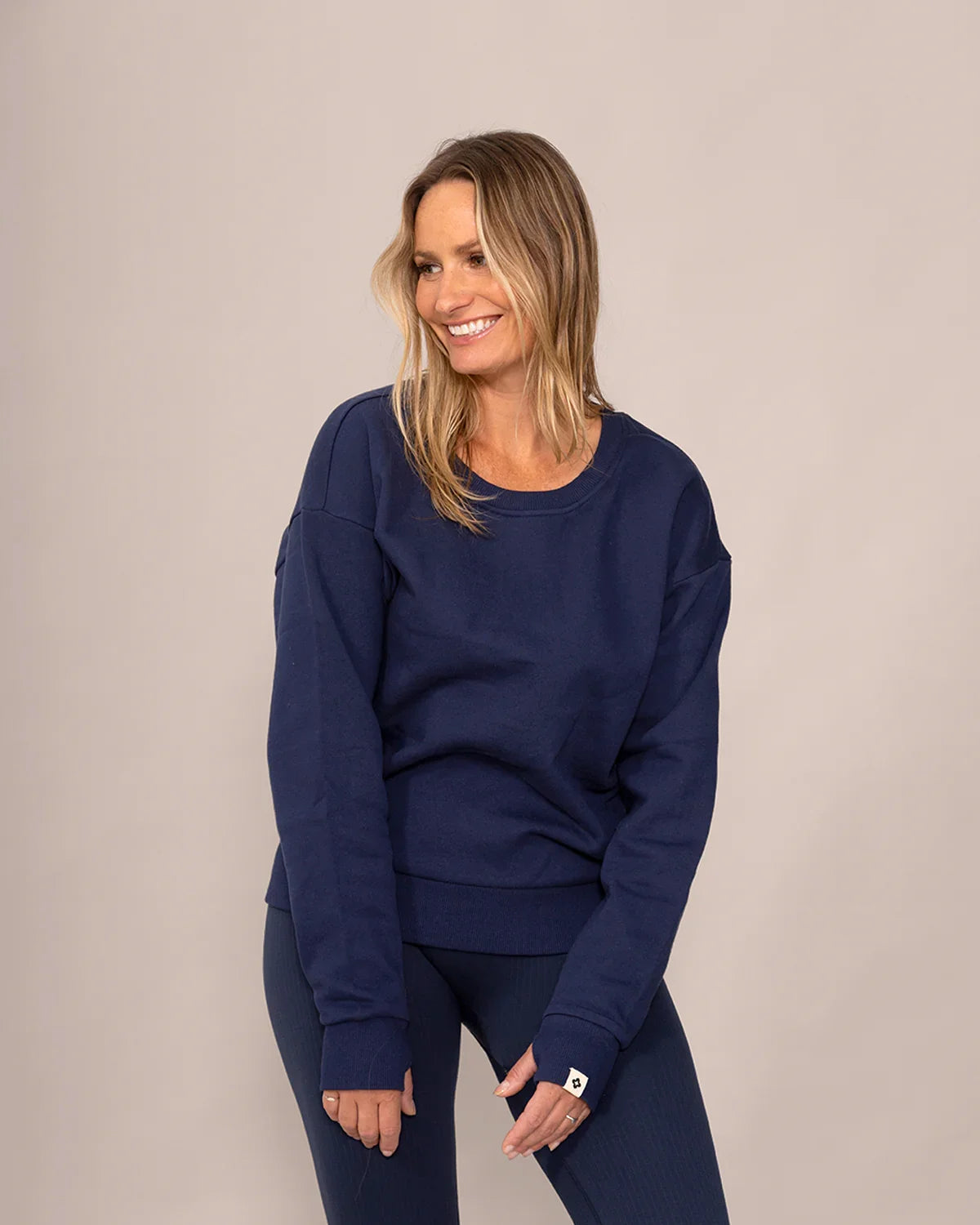 A Feminine Take on a Classic– A relaxed crew neck with a more open neckline for a soft, effortless look.