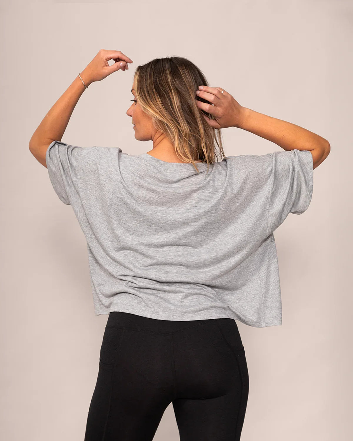 Get ready to elevate those good vibes with our essential Easy Flow T-shirt. Crafted for those who embrace movement and mindfulness and designed with an oversized, boxy fit and cropped silhouette. With dropped shoulders and an ultra-soft feel, this flowy, lightweight tee is perfect for layering over your favorite sports bra and adding a little something extra to your active lifestyle. This is your go-to; whether you're warming up or cooling down, you're ready to just go with the flow.