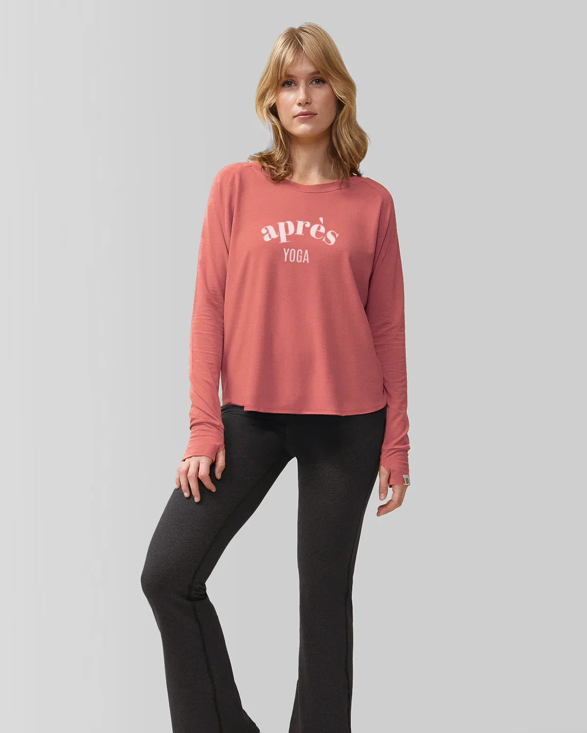 Elevate your comfort with our Après Yoga Cozy Crop Top for women in Coral. Crafted from eco-friendly BioSoft fabric, this long-sleeve top is ultra-soft, breathable, and designed for versatile movement on and off the mat. The relaxed fit and stylish cropped length make it perfect for mid-season or layering. Inclusive sizing and mindful design support confidence and comfort, inspiring you to move with ease and authenticity every day.