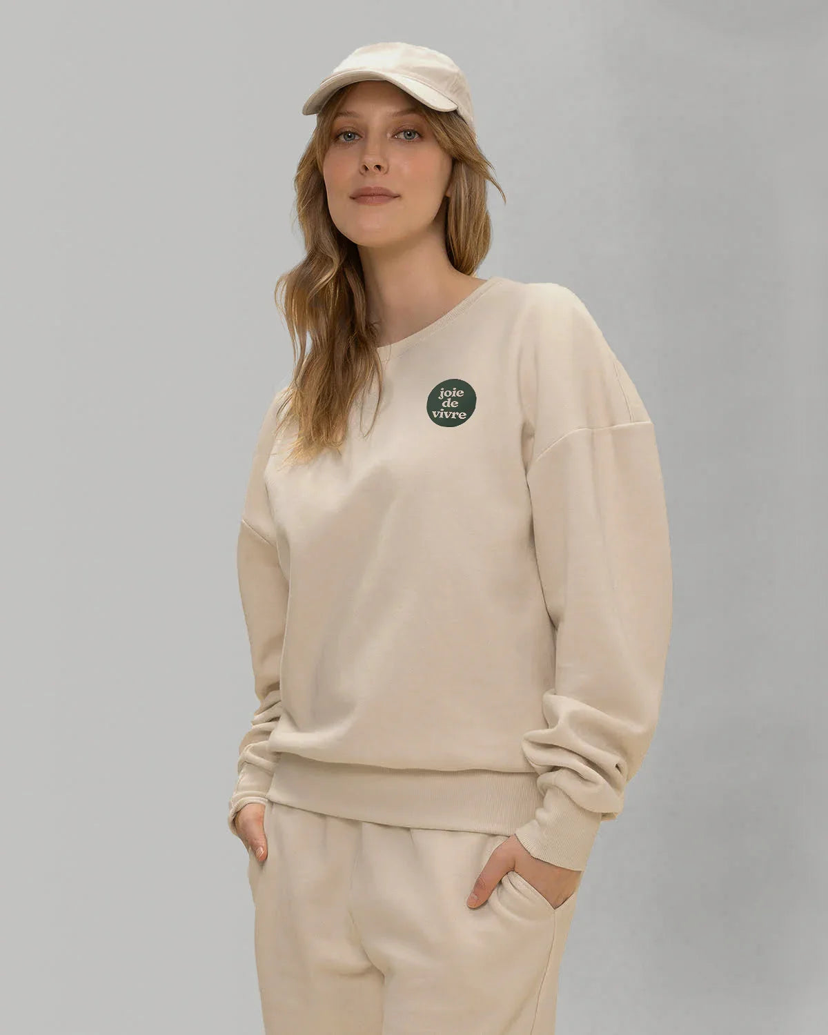 Joie de vivre Sweatshirt. It’s not just a sweater; it’s a declaration of love—for life and comfort. With its semi-oversized fit and sleeves that are just a tad extra, it’s like wrapping yourself in a warm hug. Made from BioFleece (organic cotton) and Oeko-Tex 100 certified, it not only feels good on the skin, but it also aligns with our eco-conscious values. This Limited Edition brings a smile to your heart.