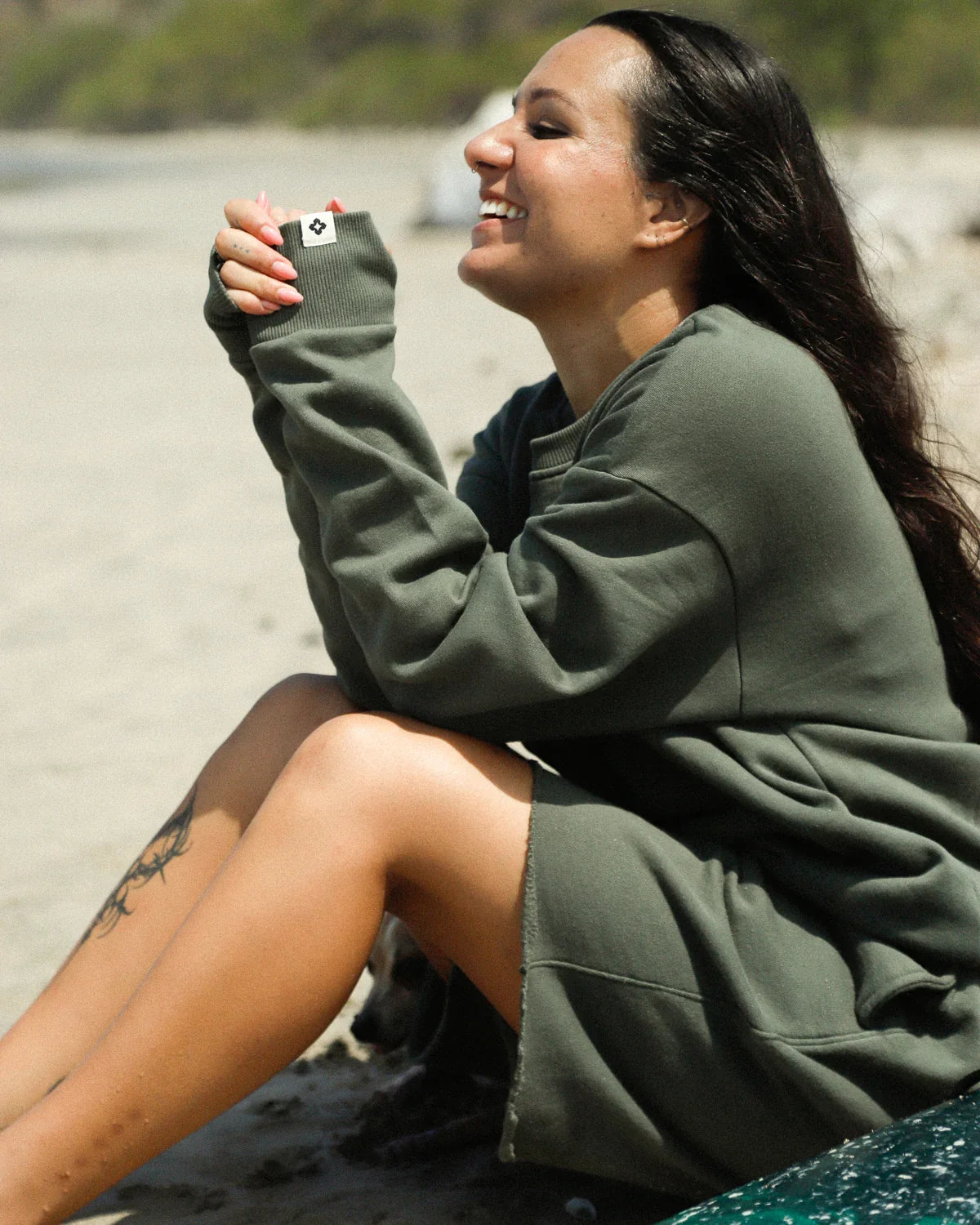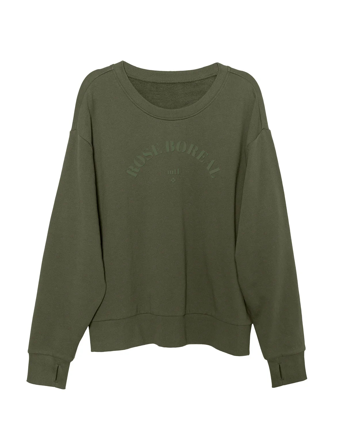 The signature sweatshirt is crafted from 100% responsible cotton to embrace you in sustainable softness. This relaxed, mid-length design is the classic go-to sweatshirt that you will wear again and again. Versatile with a touch of nostalgia, it carries you from active days to peaceful moments of reflection. With practical thumbholes and effortless style, let this piece be your companion in comfort, wherever your heart leads.