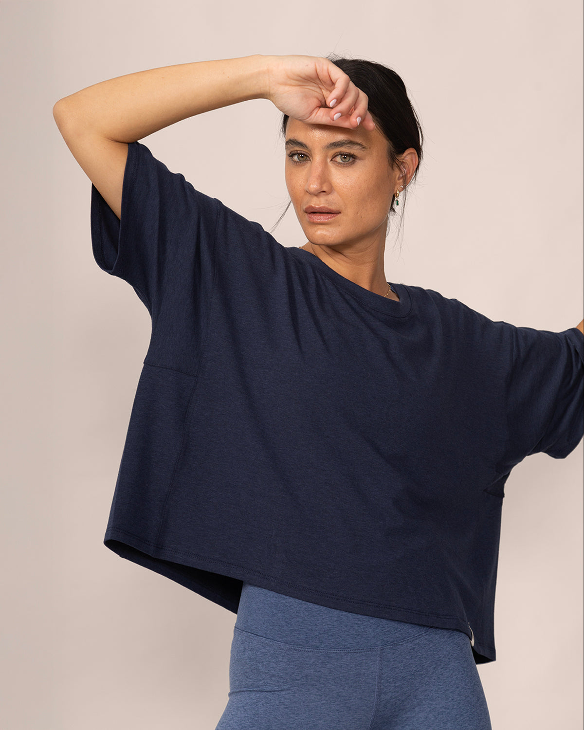 Get ready to elevate those good vibes with our essential Easy Flow T-shirt. Crafted for those who embrace movement and mindfulness and designed with an oversized, boxy fit and cropped silhouette. With dropped shoulders and an ultra-soft feel, this flowy, lightweight tee is perfect for layering over your favorite sports bra and adding a little something extra to your active lifestyle. This is your go-to; whether you're warming up or cooling down, you're ready to just go with the flow.