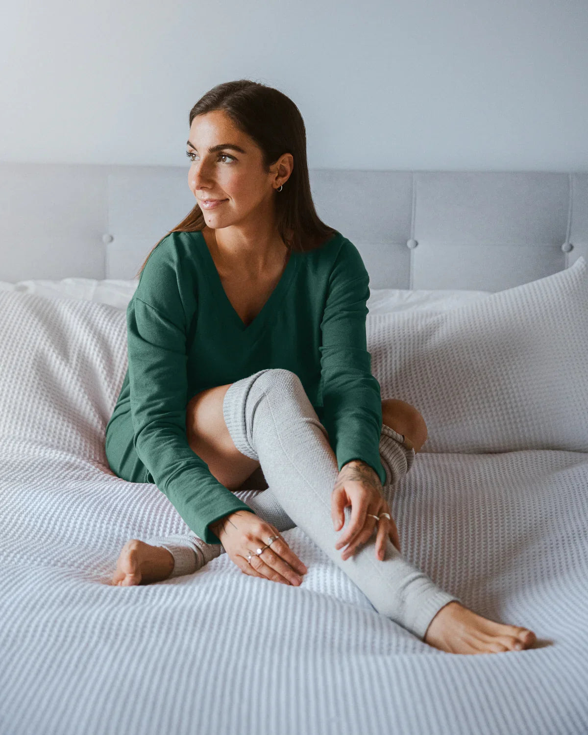 Adopte le confort le plus polyvalent grâce à nos jambières, fabriquées en laine mérinos ultra-douce et responsable. Conçues pour monter jusqu'à la cuisse, elles se portent parfaitement sur un legging ou avec une jupe, pour une superposition hivernale confortable et stylée. Des promenades enneigées au yoga matinal, nos jambières t'apportent toute la chaleur et l'élégance nécessaire pour rendre chaque moment hivernal magique.