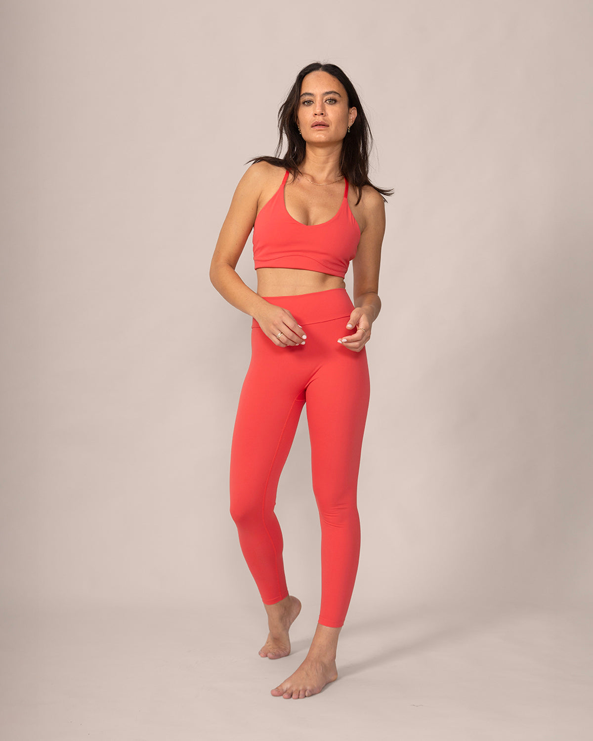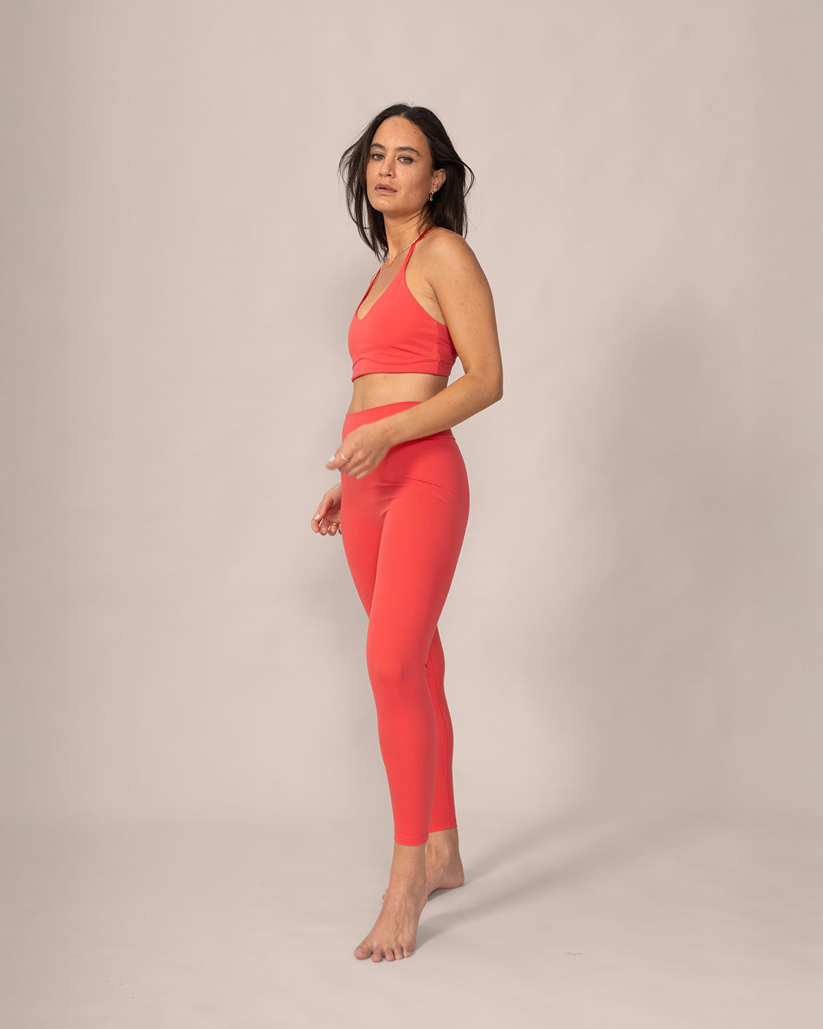 Une compression moyenne qui soutient sans trop serrer. Une taille haute sculptante qui reste vraiment en place (oui, même lors de ta troisième tentative de posture du corbeau). Le tissu est lisse, mat, respirant, sans couture à l’avant pour zéro distraction, et avec des coutures arrière qui flattent naturellement la silhouette.
