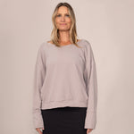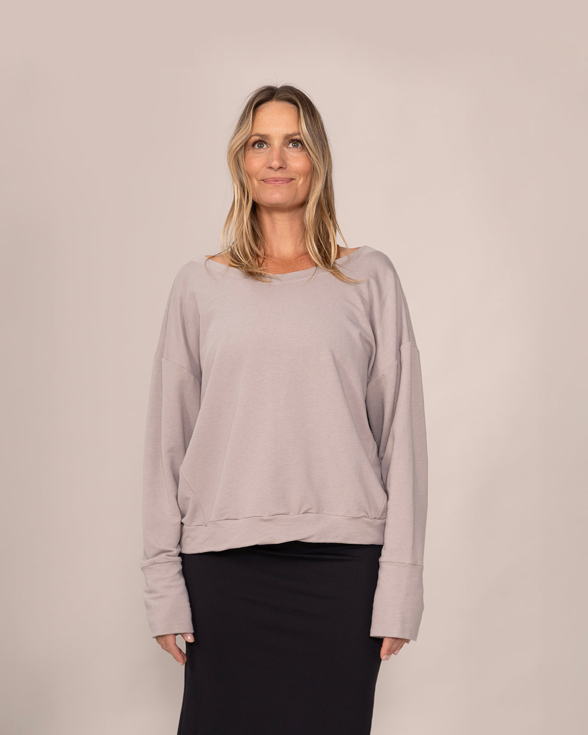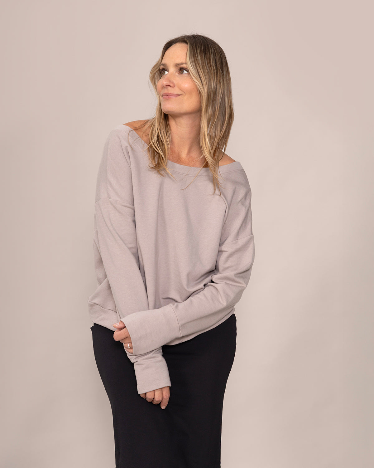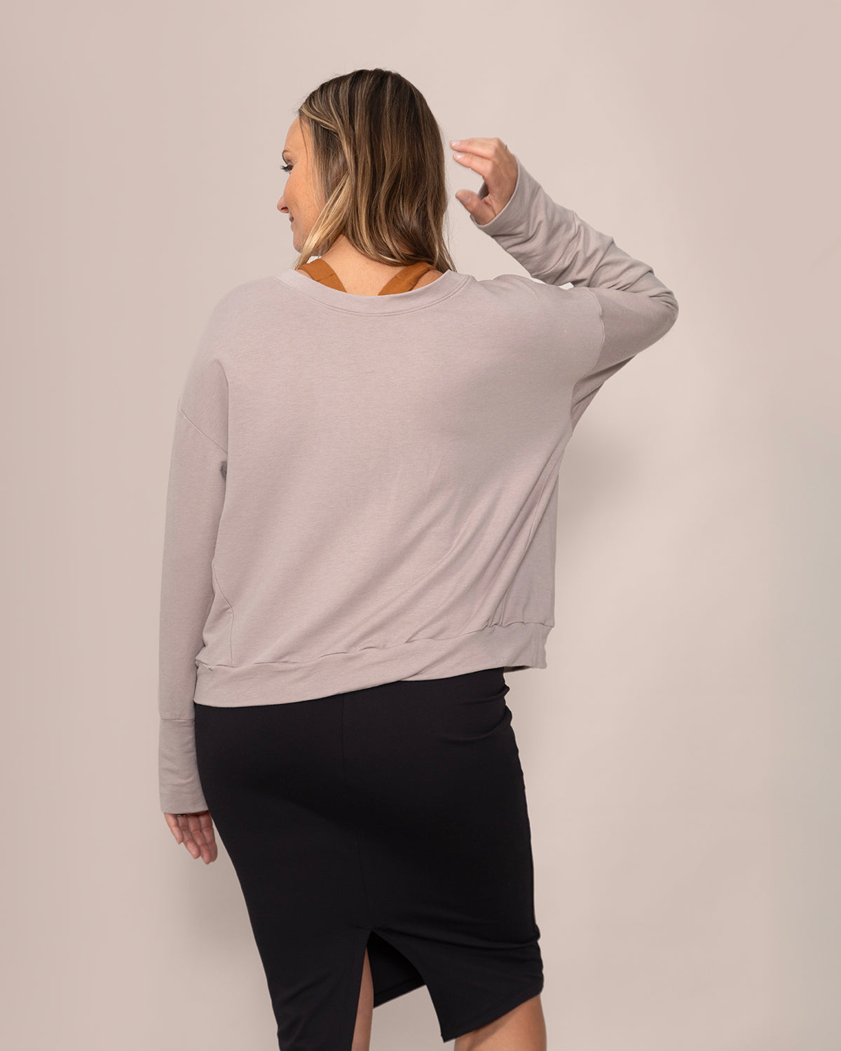 Sur ta liste de choses à faire aujourd'hui : S'AIMER SOI-MÊME. Ce chandail d'un chic sans effort présente une encolure en V profonde que tu peux porter à l'avant ou à l'arrière pour un look féminin et polyvalent. Sa coupe décontractée, ses manches longues et son drapé doux le rendent parfait pour superposer - ou porter légèrement hors de l'épaule pour une touche sensuelle facile. Inspiré de notre robe Tofino best-seller, le chandail Essence à encolure en V capture le même confort et élégance intemporels, maintenant sous forme de chandail confortable. Fabriqué à partir de notre tissu écologique BioLux, un mélange luxueux de tissu éponge français fait de TENCEL™, cette pièce est soyeuse au toucher et bouge magnifiquement avec toi tout au long de la journée. Le confort n'a jamais été aussi beau - promis juré !